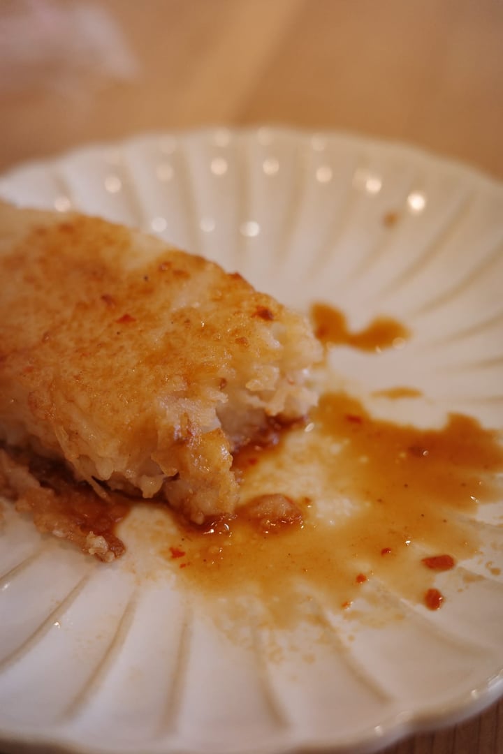 我們聊到蘿蔔糕,老闆後來還招待我們一小塊蘿蔔糕。